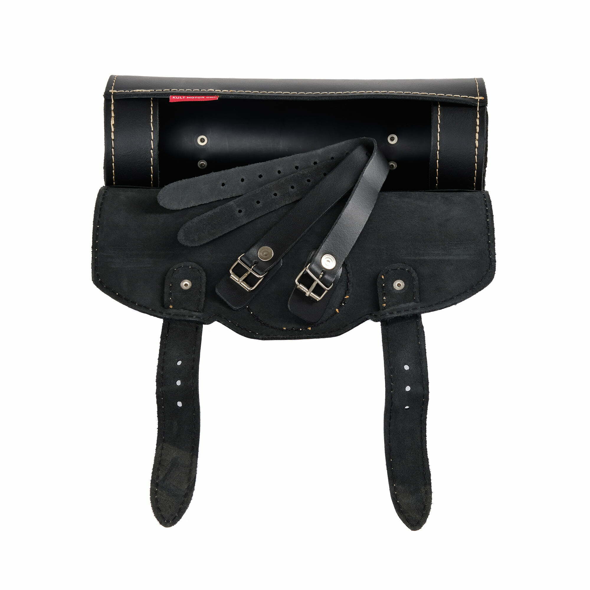 „Oldschoolowy Design” dzięki skórzanemu paskowi z nierdzewną klamrą metalową, jednak pod spodem ukryte jest szybkie otwieranie za pomocą plastikowej klamry. Klamry zrobione są z wytrzymałego tworzywa sztucznego i w praktyce sprawdzają się znacznie lepiej niż metalowe! Nie rdzewieją, są lżejsze oraz zachowują swoją funkcję w kontakcie z wodą! Paski mocujące sakwę dostępne są w komplecie.