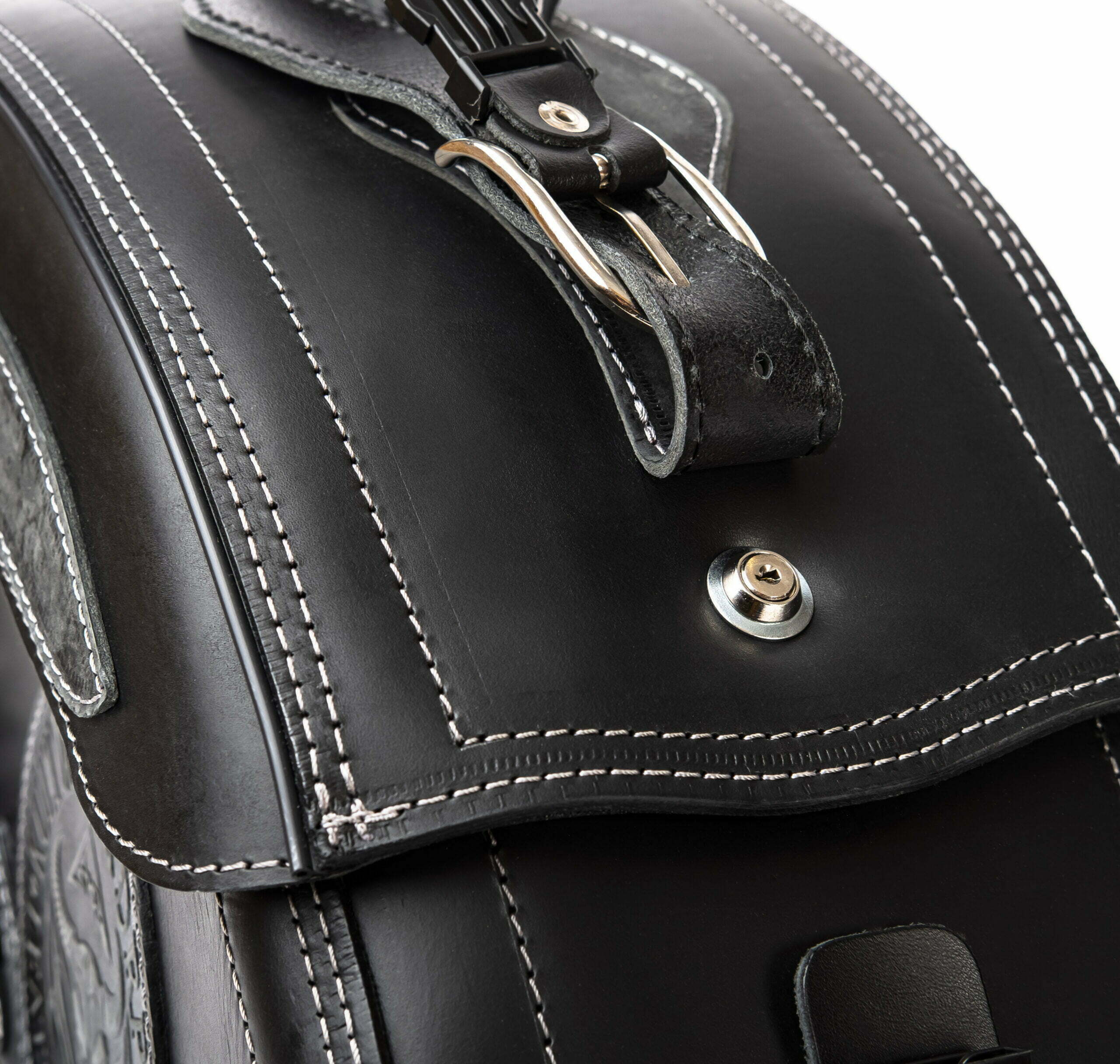 „Oldschoolowy Design” dzięki skórzanemu paskowi z nierdzewną klamrą metalową, jednak pod spodem ukryte jest szybkie otwieranie za pomocą plastikowej klamry. Klamry zrobione są z wytrzymałego tworzywa sztucznego i w praktyce sprawdzają się znacznie lepiej niż metalowe! Nie rdzewieją, są lżejsze oraz zachowują swoją funkcję w kontakcie z wodą! Paski mocujące sakwę dostępne są w komplecie.